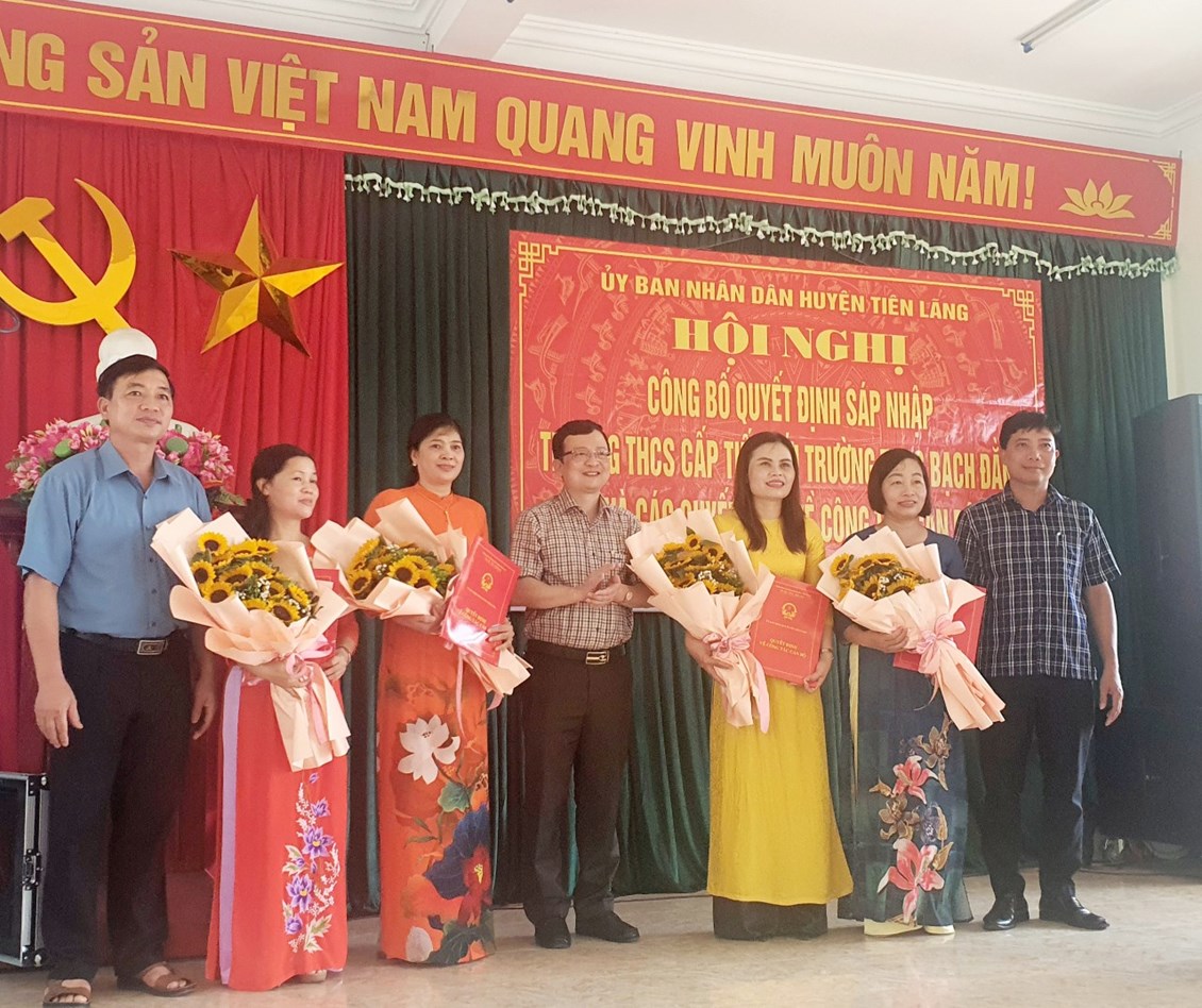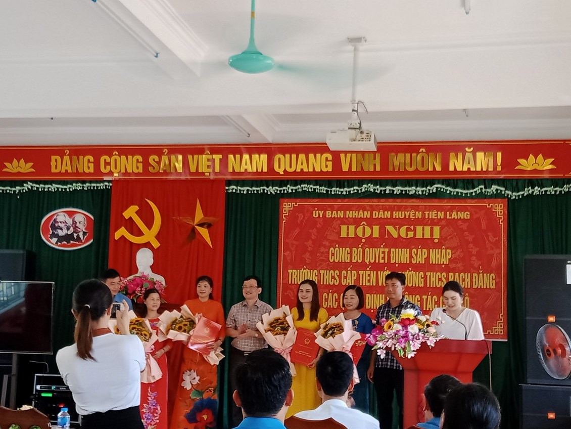 Tại hội nghị, đồng chí Phạm Thị Lan - Ủy viên Huyện ủy, Trưởng phòng nội vụ huyện công bố quyết định sáp nhập trường THCS Cấp Tiến với trường THCS Bạch Đằng.Theo quyết định, từ ngày 01/07/2023 trường THCS Cấp Tiến sáp nhập với trường THCS Bạch Đằng thành trường THCS Cấp Tiến - Bạch Đằng. Trường THCS Cấp Tiến - Bạch Đằng gồm 2 khu : Khu trung tâm tại thôn Kinh Lương - xã Cấp Tiến - Tiên Lãng - Hải Phòng và cơ sở 2 tại thôn Xuân Lai - xã Bạch Đằng - Tiên Lãng.